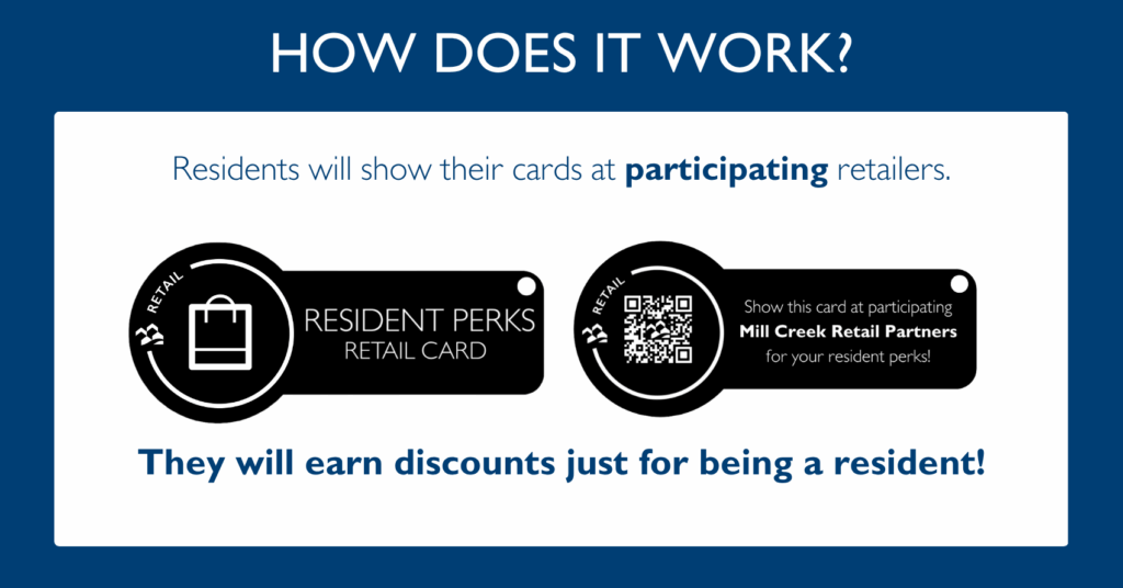 If you are a current Retail Partner at one of our Mill Creek communities and need assistance with joining the Perks Program or updating your special, please contact your onsite team.